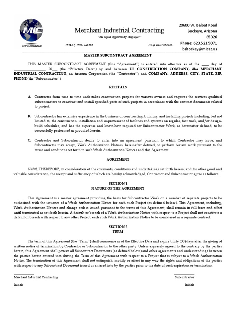 Images. This subcontract agreement does not take into consideration the. These arrangements are most often seen in the construction industry, where a company contracts for a job and then.