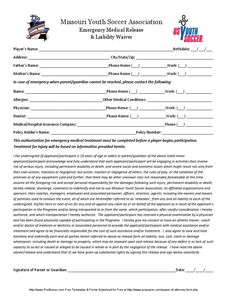 A medical release form document can be used to get consent for the people in charge to submit your child for an immediate medical treatment on any hospital or medical practitioner closest to where the event is taking place.