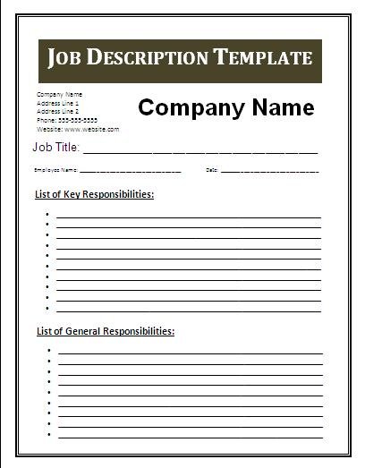 Pictures. Copy and paste into word or any software. A job description template details the specific requirements, responsibilities, job duties, and skills required to perform a role.