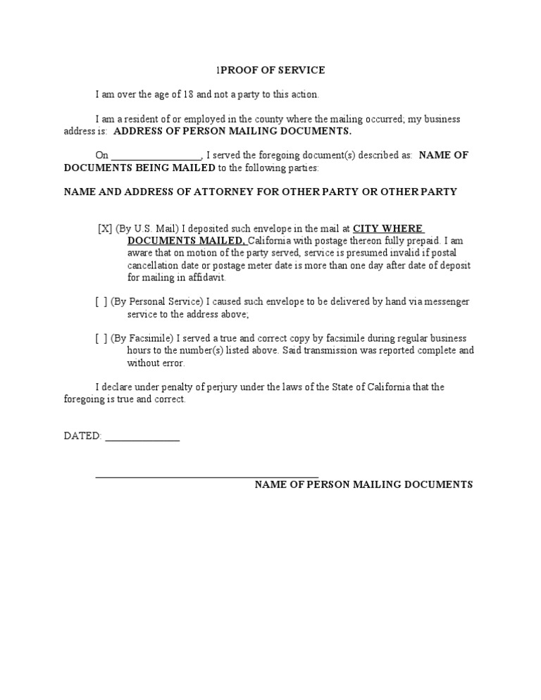 49+ Proof Of Service By Mail Template