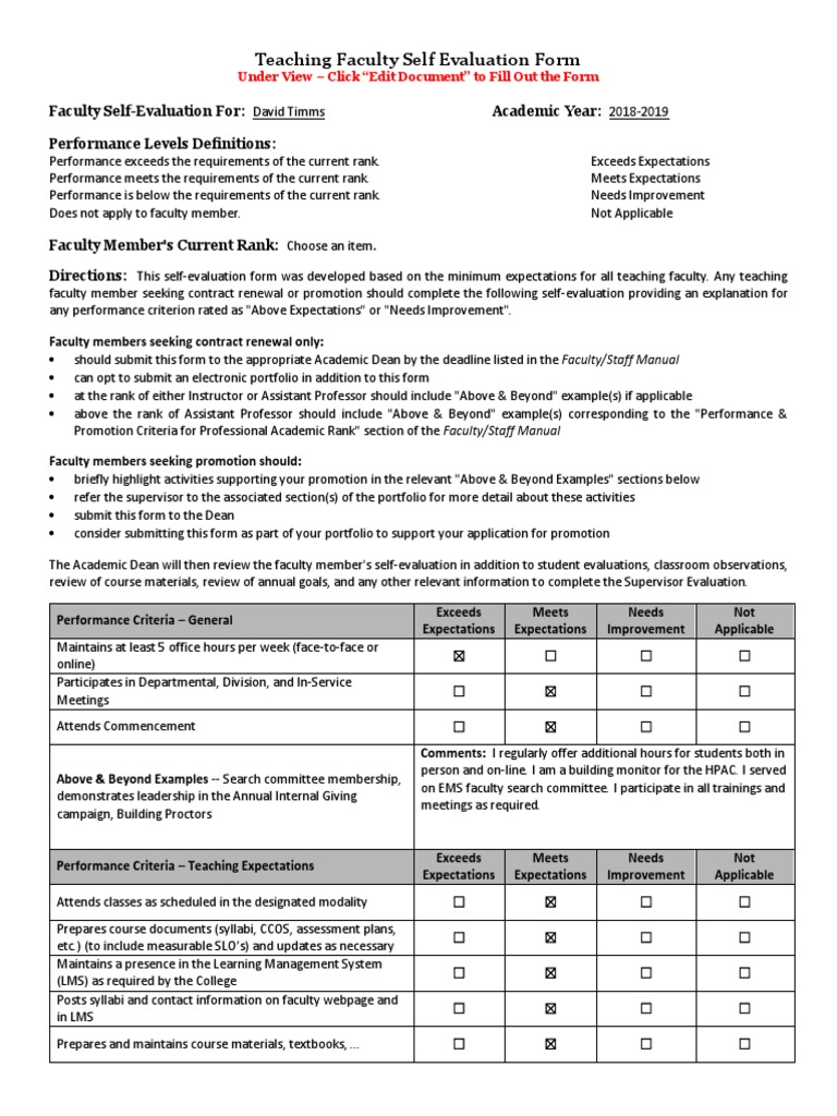 View Self Evaluation Form Examples